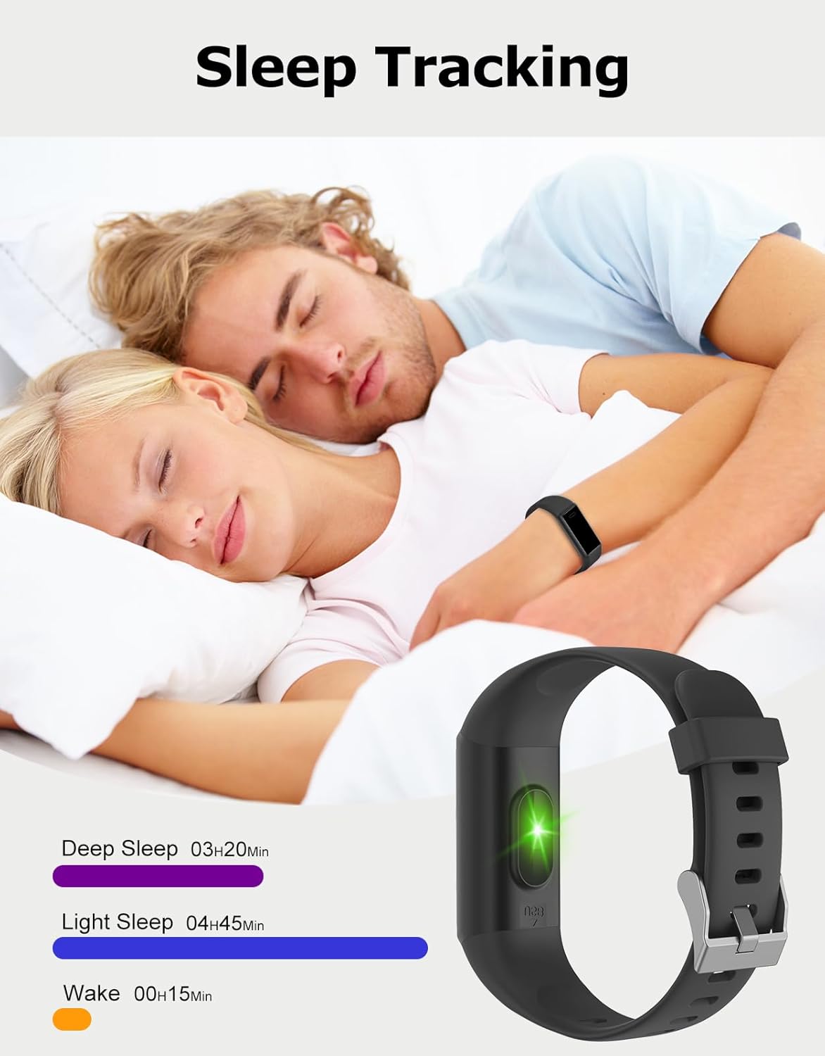 – **Comprehensive Sleep Tracking:** Get a better night’s rest with our advanced sleep tracker. Monitor your sleep patterns, including deep and light sleep stages, to understand your sleep quality and make necessary adjustments for a more restful night.